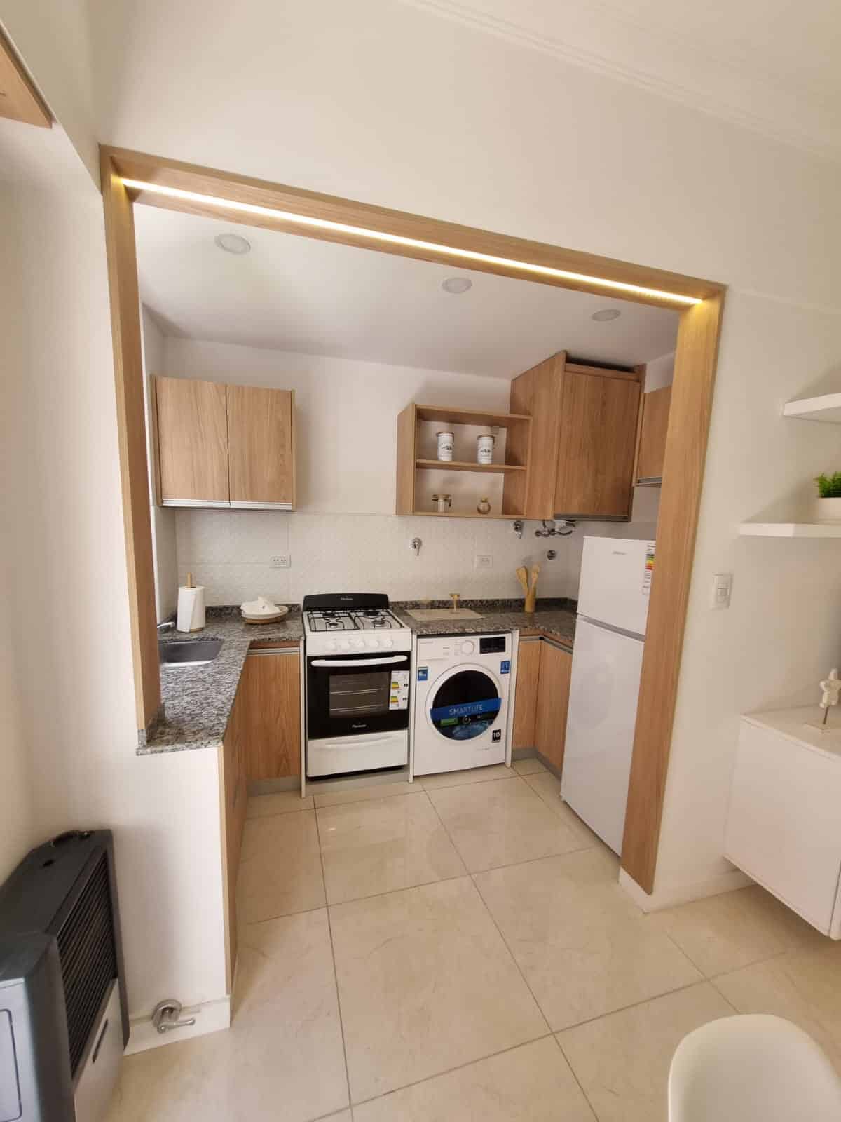Cocina semi integrada totalmente equipada. Termotanque a gas.