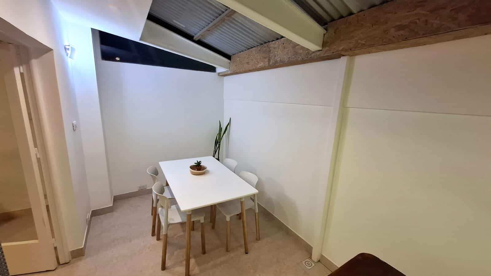 Equipado con mesa, 4 sillas y sofá cama de 2 plazas, que se puede cambiar por un sommier de 2 plazas a estrenar a gusto del comprador.