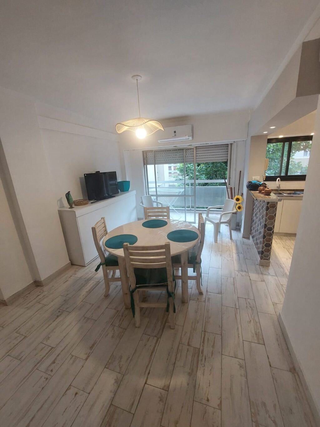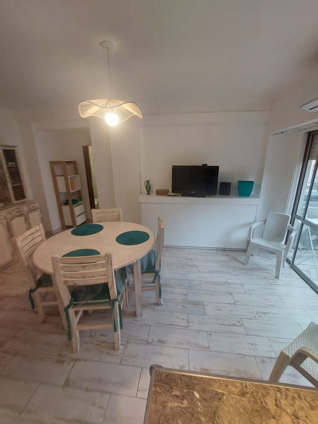 11 de Septiembre y Catamarca – Departamento de 2 ambientes totalmente reciclado al frente con balcón para alquiler temporario. Amplio living comedor con salida al balcón saliente. Cocina integrada al living comedor calefón y heladera con freezer. Muy luminoso, mesa circular con 4 sillas y TV 32′ y Wifi, aire acondicionado frío/calor. Amplio dormitorio al frente con cama de 2 plazas, placard, calo ventor y ventilador de techo. Baño completo totalmente reciclado.