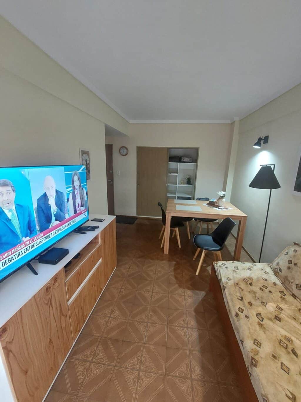 Arenales y Falucho – Alquiler temporal de excelente departamento de 2 ambientes equipado para 4 personas. Amplio balcón al frente con mesas y sillas. Dormitorio con cama matrimonial. Living con cama de 1 plaza con carrito para 1 o 2 personas. Cocina totalmente equipada con heladera. TV por cable e internet Wi-Fi. Excelente ubicación, a 2 cuadras de Plaza Colón, 3 cuadras de Playas y 8 de la Peatonal San Martín.