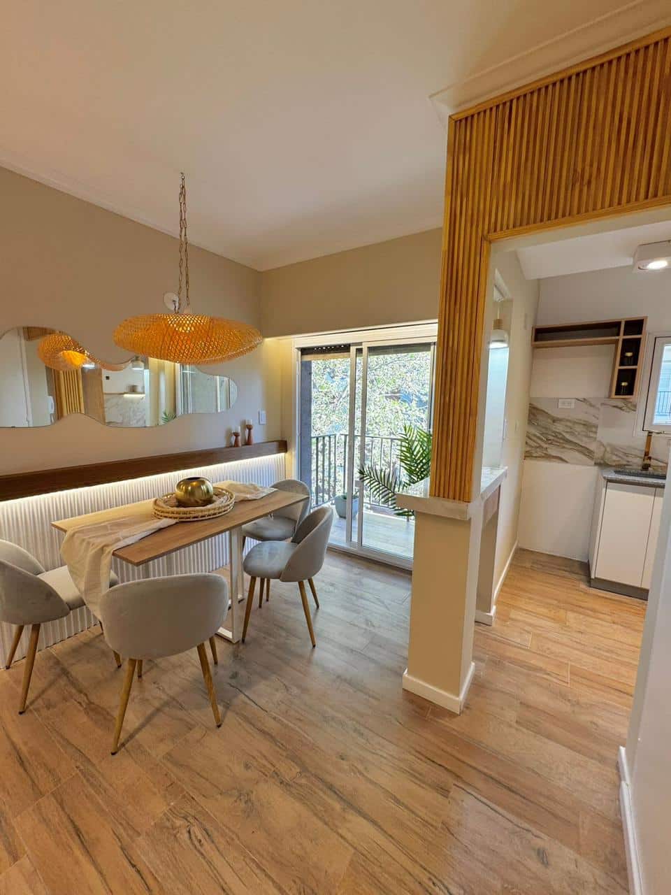 El mismo cuenta con cómodo ambiente con balcón a la calle con pisos y revestimientos en porcelanato, finamente decorado.