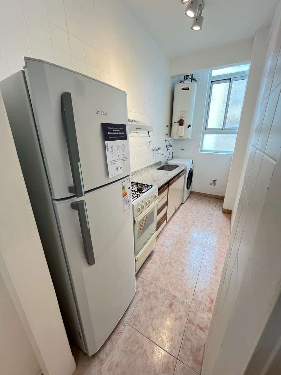 Cocina independiente con heladera con freezer y lavarropas a estrenar.