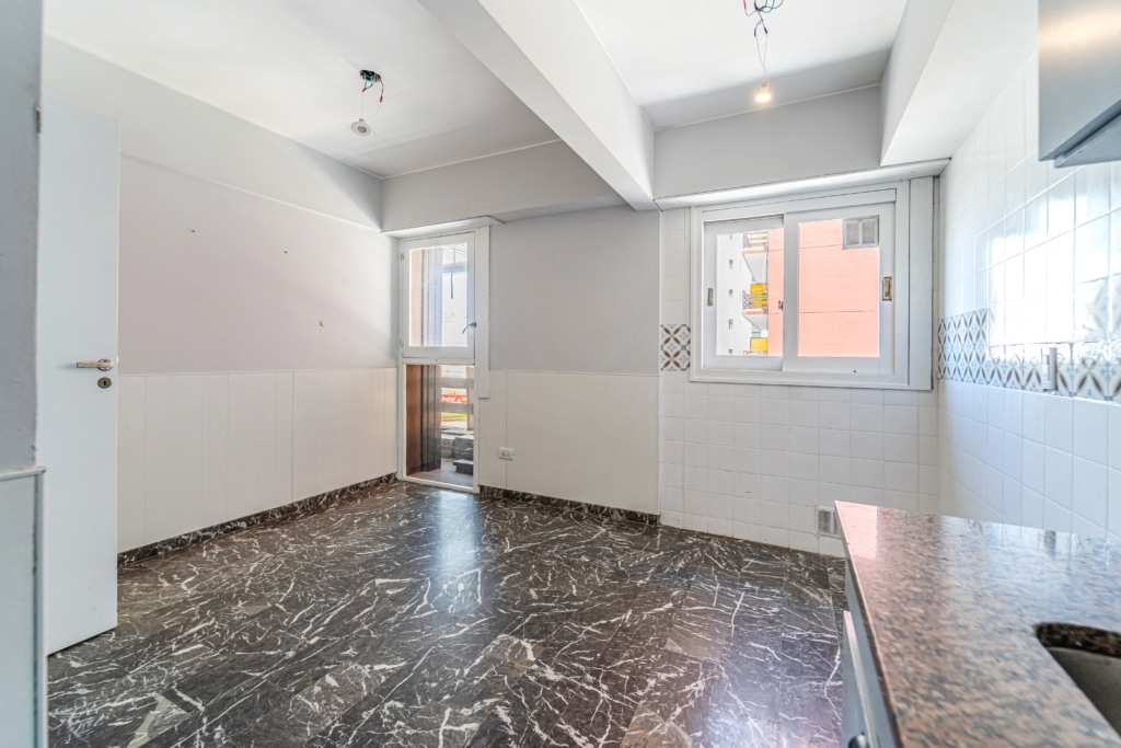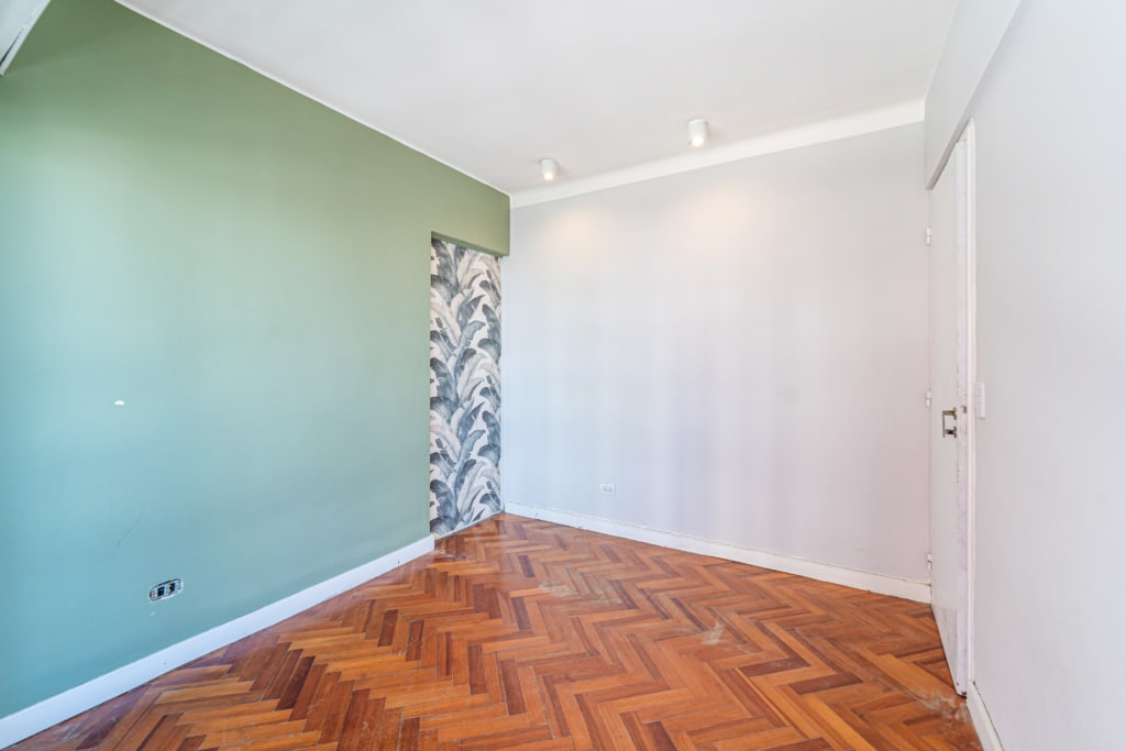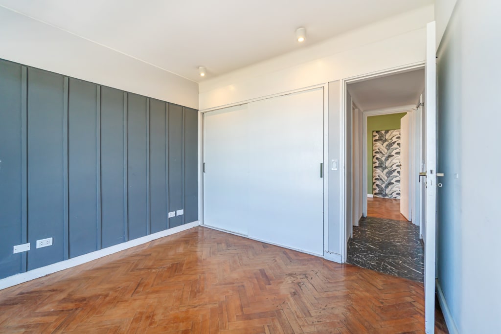 La misma cuenta con dos dormitorios y dos baños. El departamento es muy luminoso y tiene tres balcones salientes.