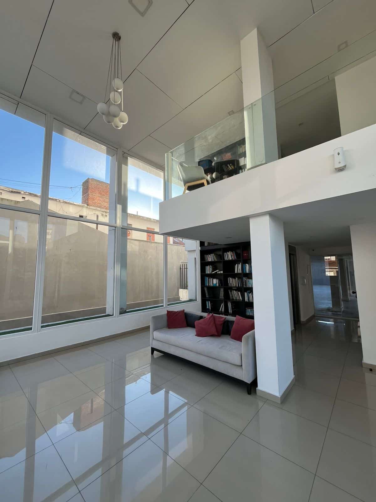 Al ingreso, amplio ambiente único con salida al balcón saliente. Aberturas de aluminio DVH y cortinas black out.