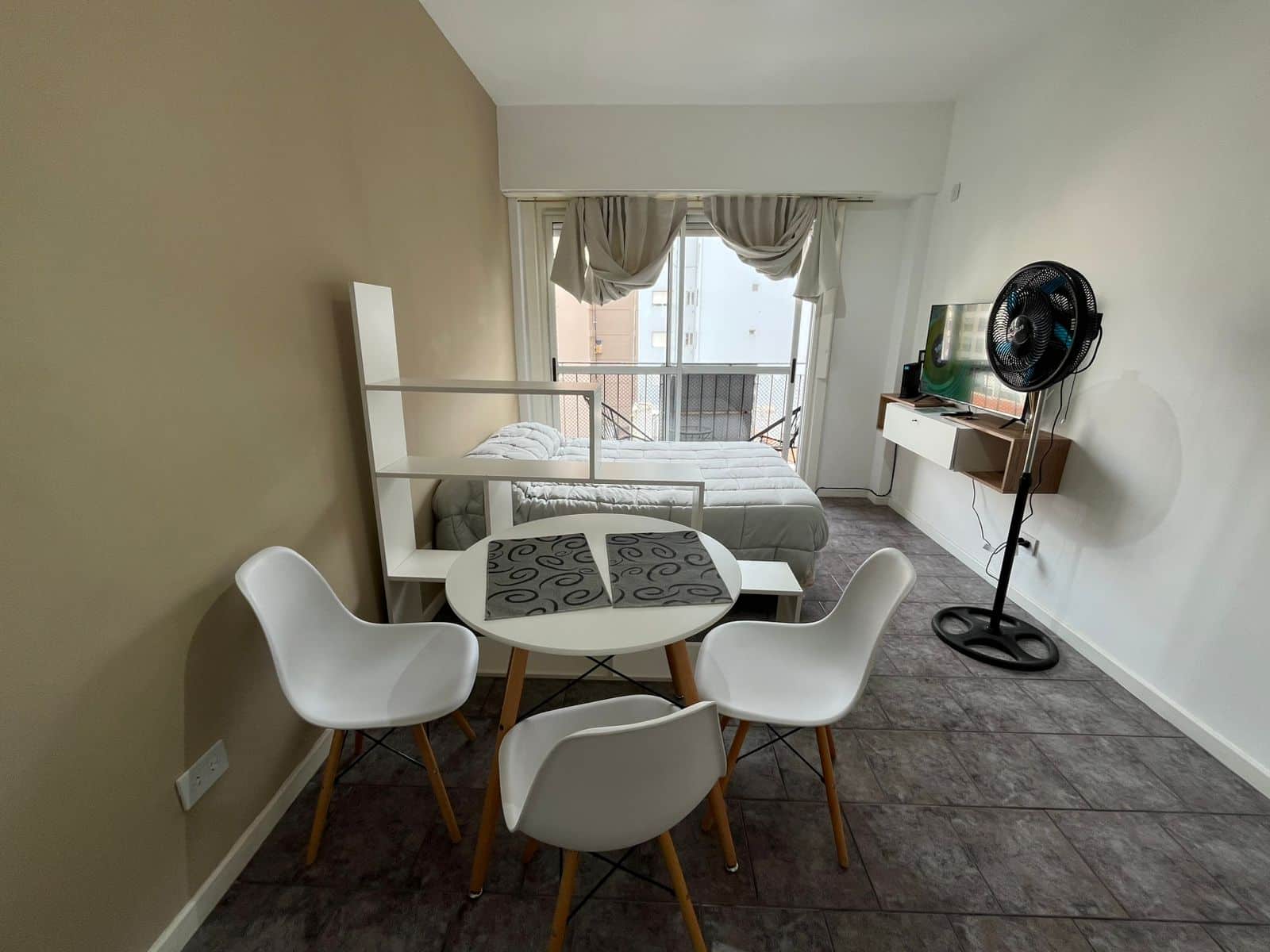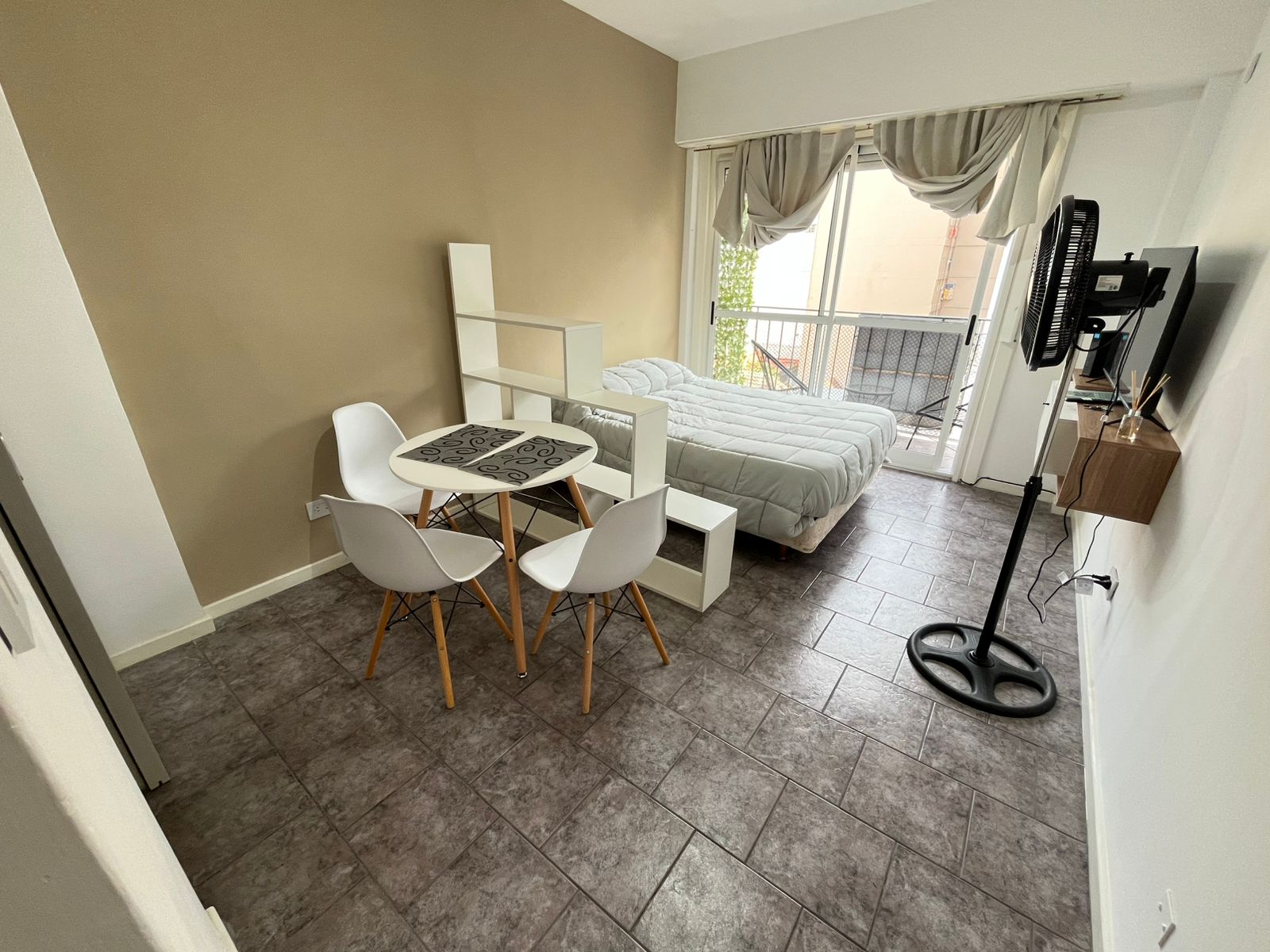 Departamento de 1 ambiente a la calle con balcón saliente equipado y modernizado.