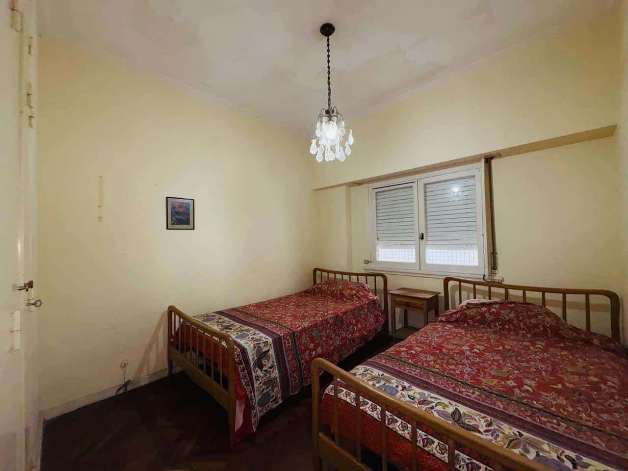 El dormitorio principal, con placard y pisos parquet, cuenta con salida al balcón al frente, con vista a la Avenida Colón.