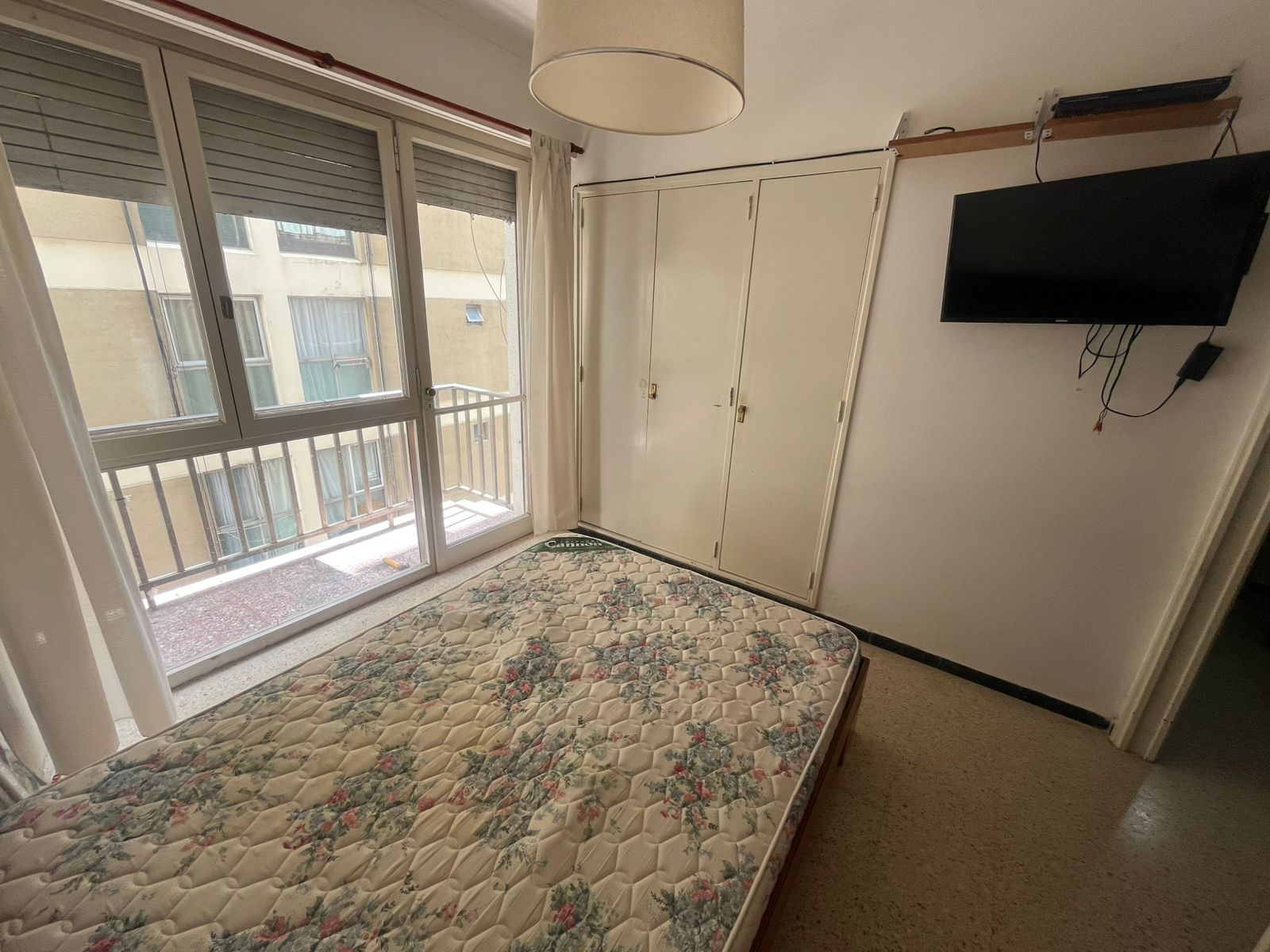 Sector dormitorio con TV de 32″, cama de 2 plazas y salida al balcón.